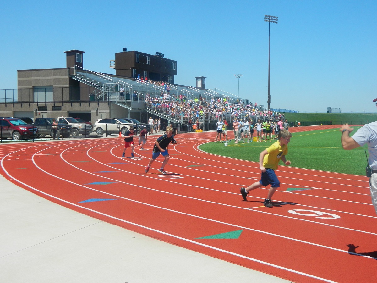 Around 200 5th graders from Oskaloosa Elementary School walked over to the stadium at the Lacey Recreation Complex to compete in a track meet against their fellow classmates on May 14th. With the sun shining, low wind and the smell of sun screen in the air 5th grade students participated in multiple field and running events. Later in the afternoon, other classes from Oskaloosa Elementary took a break from the normal classroom routine to cheer on fellow students in rhythmic clapping and chanting from the stands.