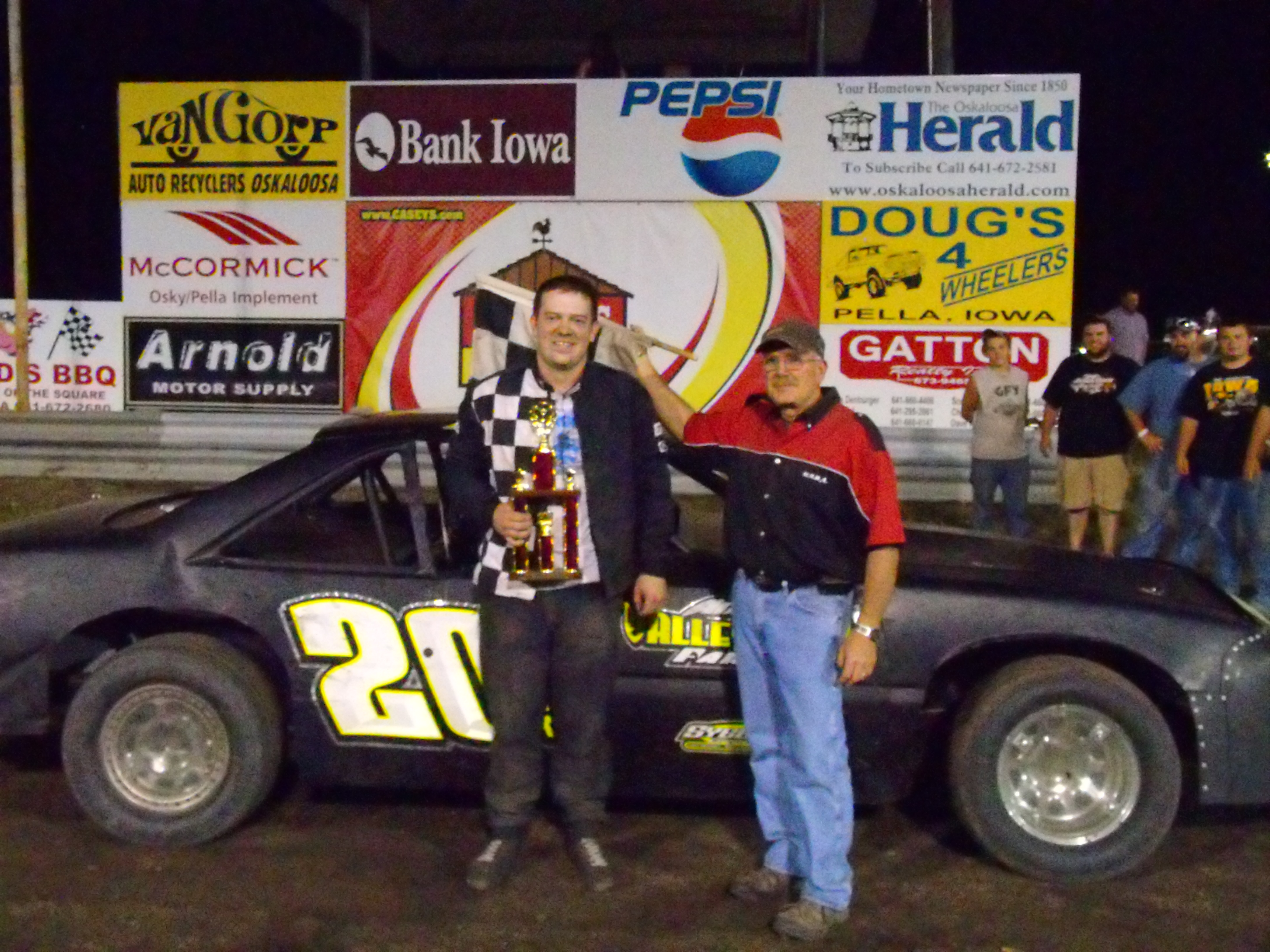 Kris Walker of Oskaloosa took the top spot in the USRA Hobby Stocks after starting in the 3rd position, Nick Ulin of Agency scored a second, and Steve Allen of Oskaloosa rounded out the top 3.