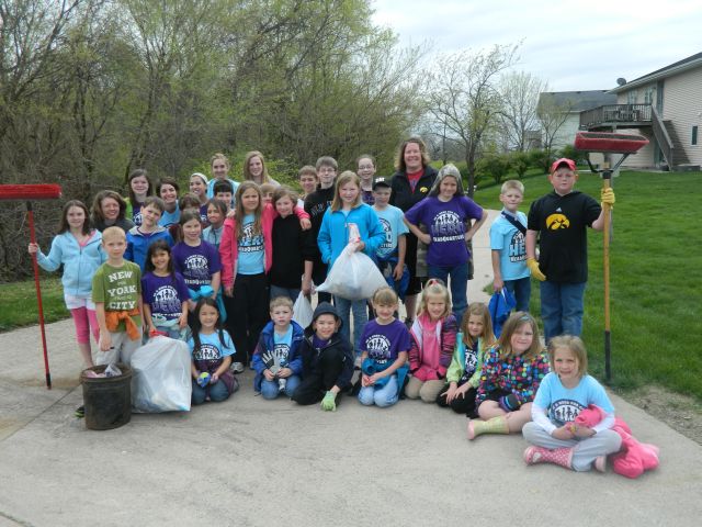 During the month of March the chapel theme for the 4th grade class at Oskaloosa Christian School was “Heroes Save the Day.” At the end of the chapel, 4th graders challenged the school to be heroes for a day and do some form of community service. On March 29th chapel groups, ranging from K-8th grade students, went out into the Mahaska community and became heroes by doing community service acts. Oskaloosa Christian School teachers, Laura Van Donselaar and Renee Van Kooten, joined their groups together to help clean the Marje addition of the Lacey Recreation Trail. Many hands make light work with 32 kids and 3 adults. The group picked up trash along the path and took turns sweeping debris off the trail. Mahaska Community Recreation Foundation appreciates volunteers like you!
