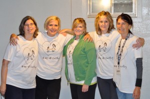 This group mostly from MidWestOne Bank is representative of the 190 volunteers who made their way out on a soggy Thursday to participate in the Day of Caring event
