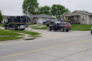 A DCI Crime Investigation Unit works at the intersection of Prairie St. and Oskaloosa St. in Pella, Iowa. (Oskaloosa News/Denis Currier}