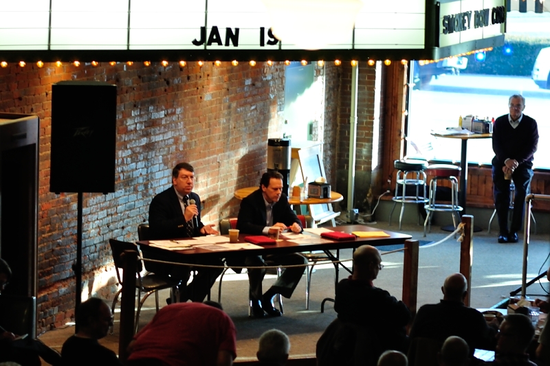 Oskaloosa, Iowa – Eggs and Issues is an Oskaloosa tradition that returned for the 2013 year. The first such meeting has always been local leaders placed on the hot-seat so to speak, and Oskaloosa Mayor Dave Krutzfeldt and Mahaska County Supervisor Greg Gordy each represented their respective branches of government.
