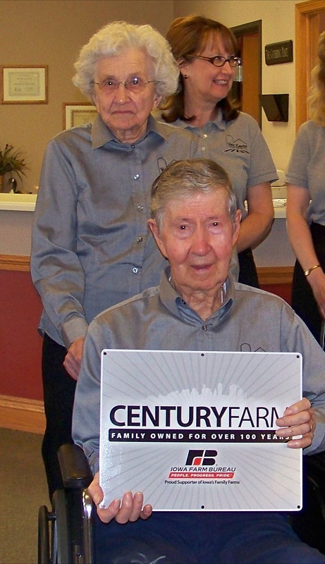 Oskaloosa, Iowa – On Wednesday, August 17, 2011 there was a special ceremony at Maple Ridge Assisted Living Center. Elmer and Elizabeth Van Zante were presented with the Century Farm Award. Century Farm Awards are presented every year to honor families which have owned Iowa farmland for 100 years or more. The Van Zante family farm has been in the Van Zante family since 1910. Two Van Zante brothers from Pella, Iowa purchased the farm in March 1910. Their family farm is located south of Eddyville in Wapello County and consists of corn, soybeans, cattle, hogs and hay.