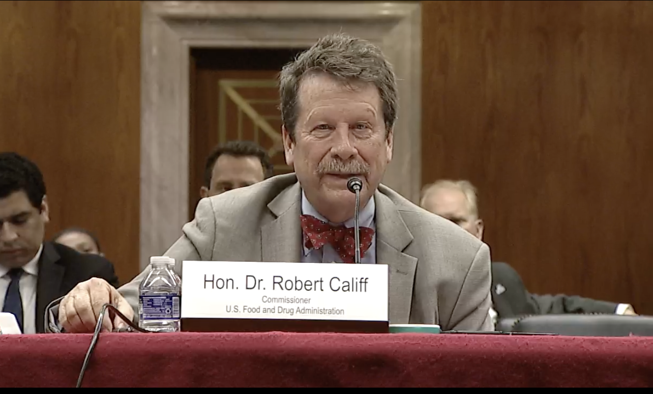 U.S. Food and Drug Administration Commissioner Robert Califf testifies before the U.S. Senate Agriculture Appropriations Subcommittee on Wednesday, May 8, 2024. (Screenshot from Senate livestream)
