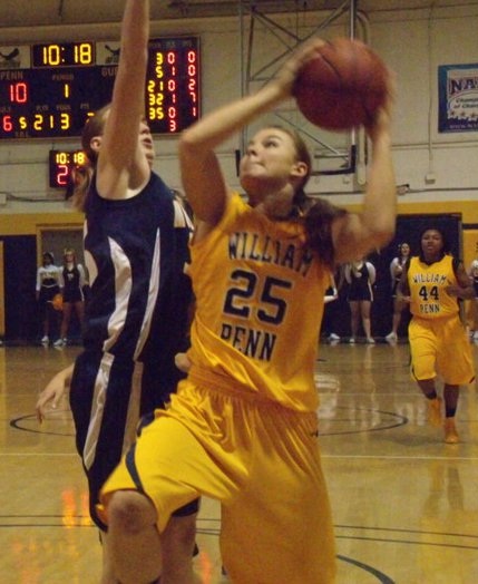 The Lady Statesmen then rattled off seven in a row, and after a few buckets were exchanged, Penn took the lead back for good at 60-59 (7:12 mark) on a layup by Christa Subbert (Sr., Stanton, Stanton HS). The points were two of her game-high 29, which drew her within just seven points of Becky Inman’s all-time school record of 2,139 points. The senior was 7-of-16 from the floor (2-of-6 3-PT), but did most of her damage at the line, finishing 13-of-15.