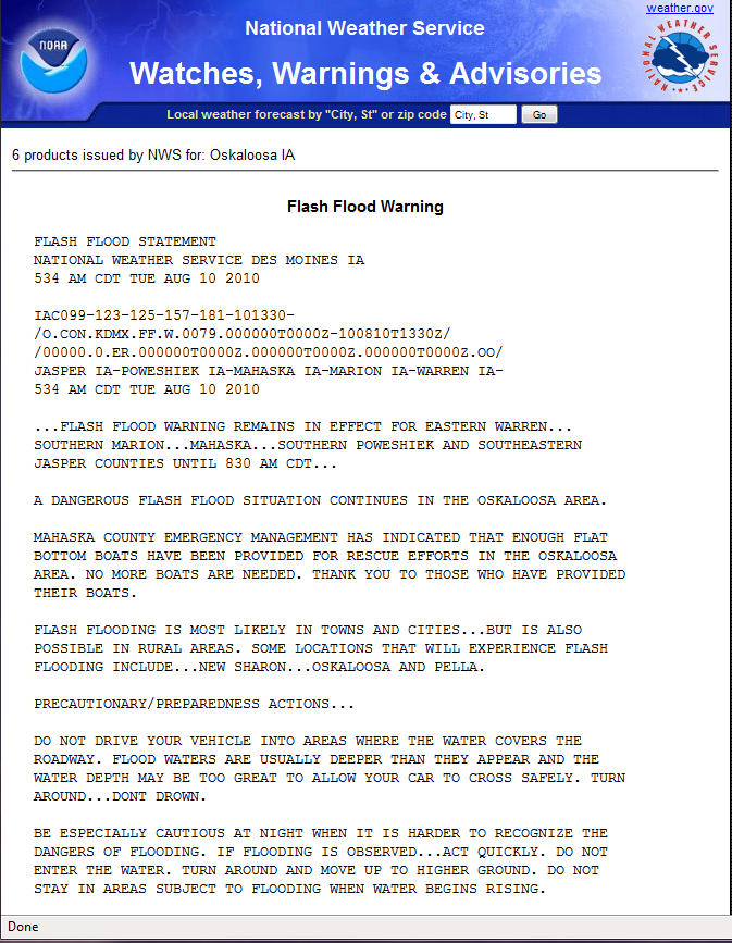 National Weather Service Flash Flood Warning for Mahaska County issued at 5:34 am