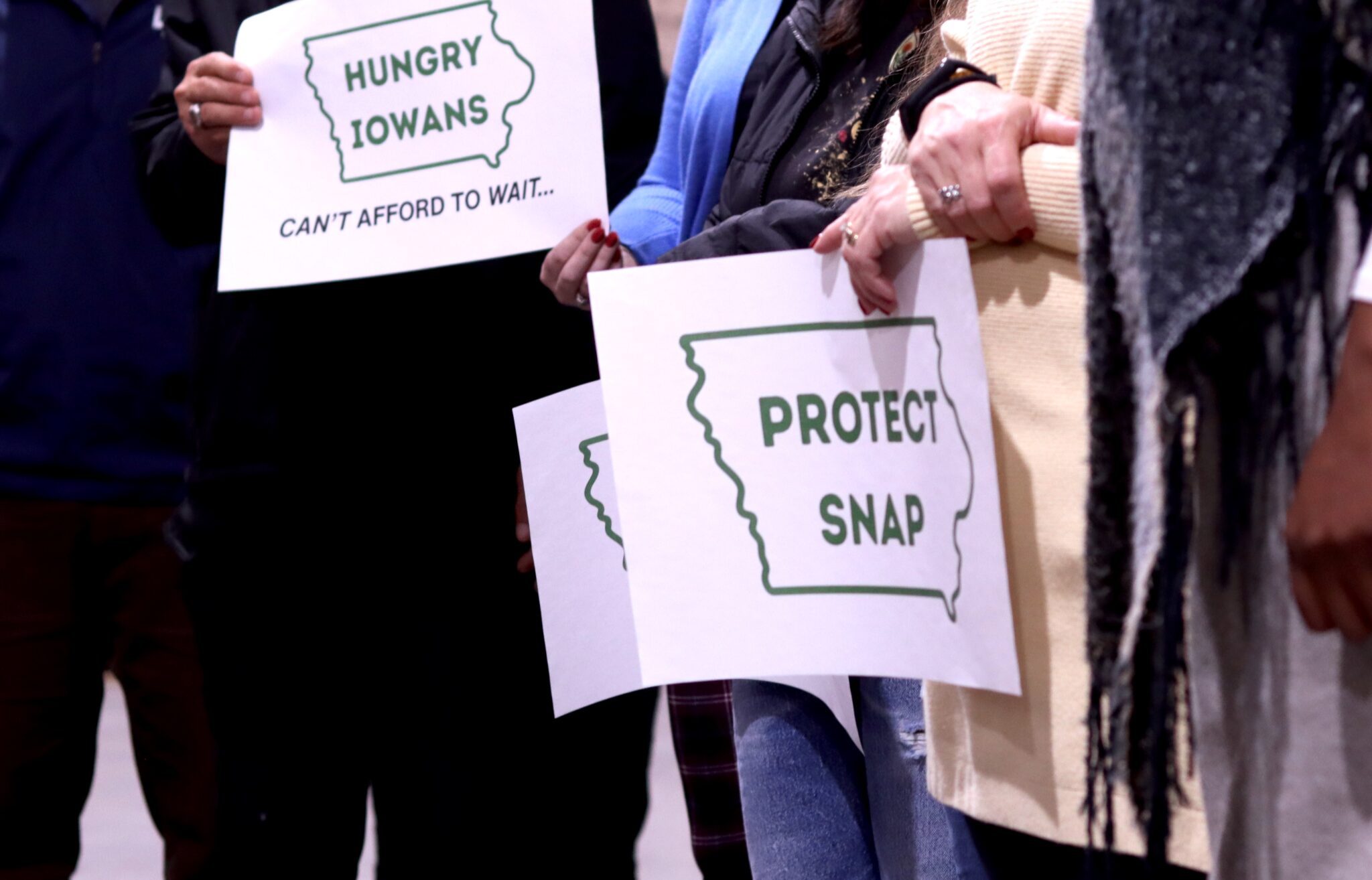 Food bank and food pantry leaders gathered in Des Moines Oct. 23, 2025 to urge the end of the government shutdown before it causes a lapse in federal nutrition program funding. (Photo by Cami Koons/Iowa Capital Dispatch)