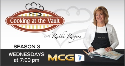 Bonus: For the first time ever, Ruthi and crew will allow a live audience to watch the filming process of Cooking@the Vault!Only twenty seats will be available for this “double treat.”