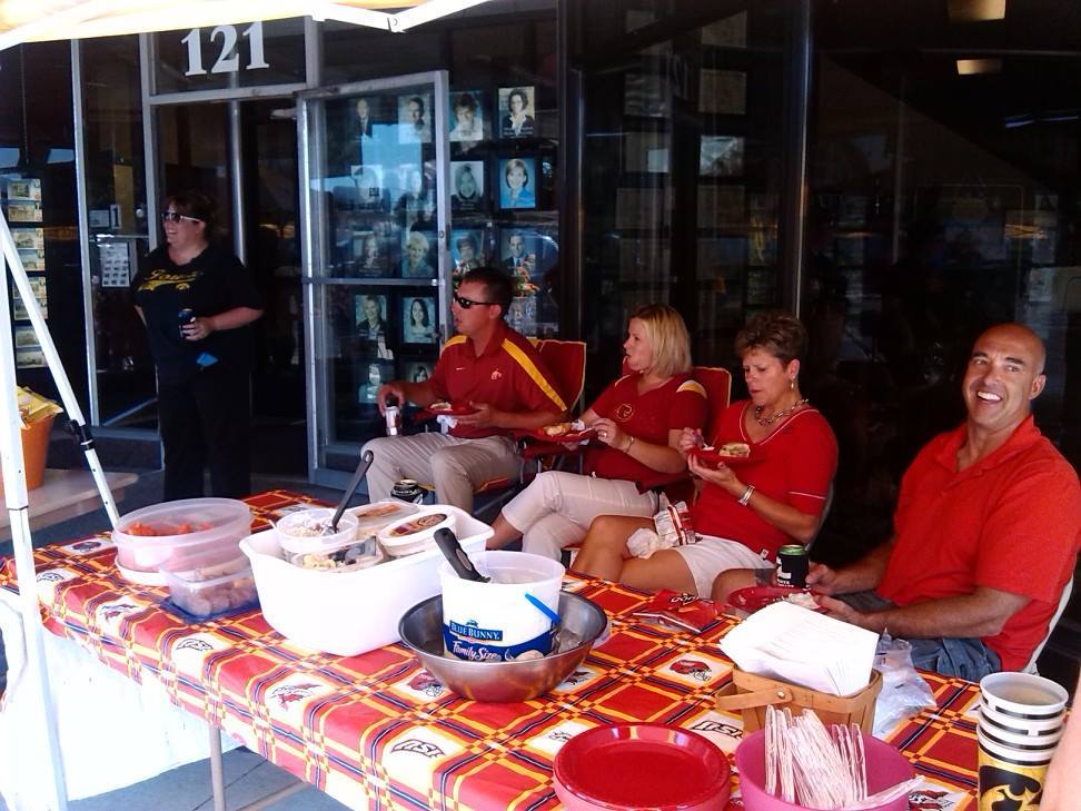 The United Way fundraiser was supposed to be an outdoor grilling tailgate party. But Hawkeye Real Estate changed plans when their “House Divided” fundraising event ended up being held on what turned out to be on the hottest day of the year. Record-breaking temperatures caused Chris Roach, Hawkeye Broker, to offer cold sandwiches and sides for the event instead of the traditional tailgating fare of burgers and hotdogs.