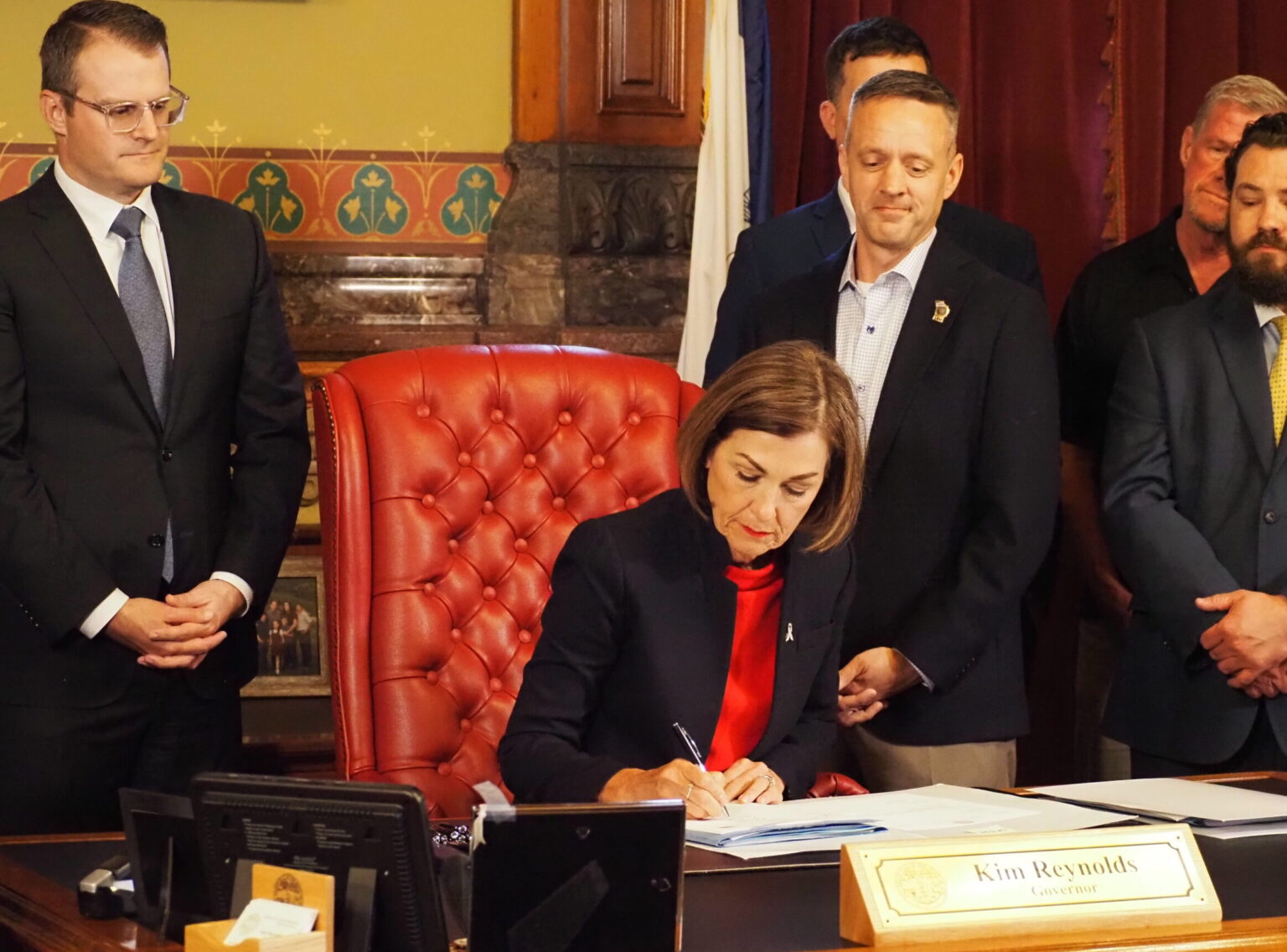Reynolds signed Senate File 2442 into law Wednesday, a measure speeding up the cut made in 2022 to decrease Iowa’s individual income tax rate to a 3.9% single rate by 2026. The governor praised Iowa Republican leadership for working with her on tax measures that “comprehensively transformed our tax code and dramatically increased our competitiveness within a few short years.”
