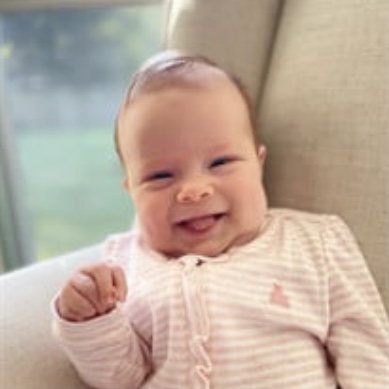 Recently, Hattie was beginning to find her voice and loved interacting with her family. She melted hearts with her coos and other sweet sounds. Her beautiful, full-faced “gummy” smile lit up the room. She had the most kissable lips, complete with the cutest dimples on her cheeks and chin. Hattie loved being outside, looking at pictures, watching her older sister Clara play, and splashing in the bath.