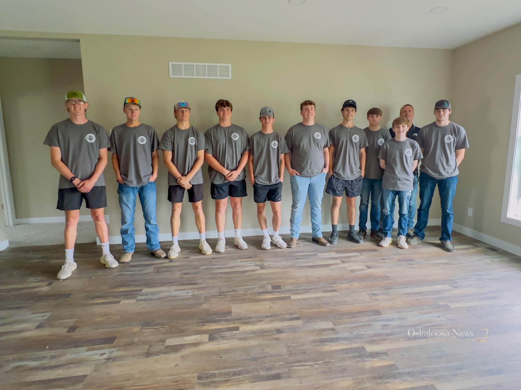 Members of the Oskaloosa Buildings and Trades program stop for a group picture at their most recent open house.