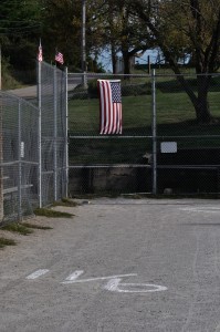 Working well past 1 am the previous night, they placed words of remembrance of that day, at the field in chalk. ‘9/11 Never Forget’ was marked out between second base and the pitchers mound, Carey’s wife and her mother hung flags from the fence during the day, and 9/11 could be found also marked out by each dugout.