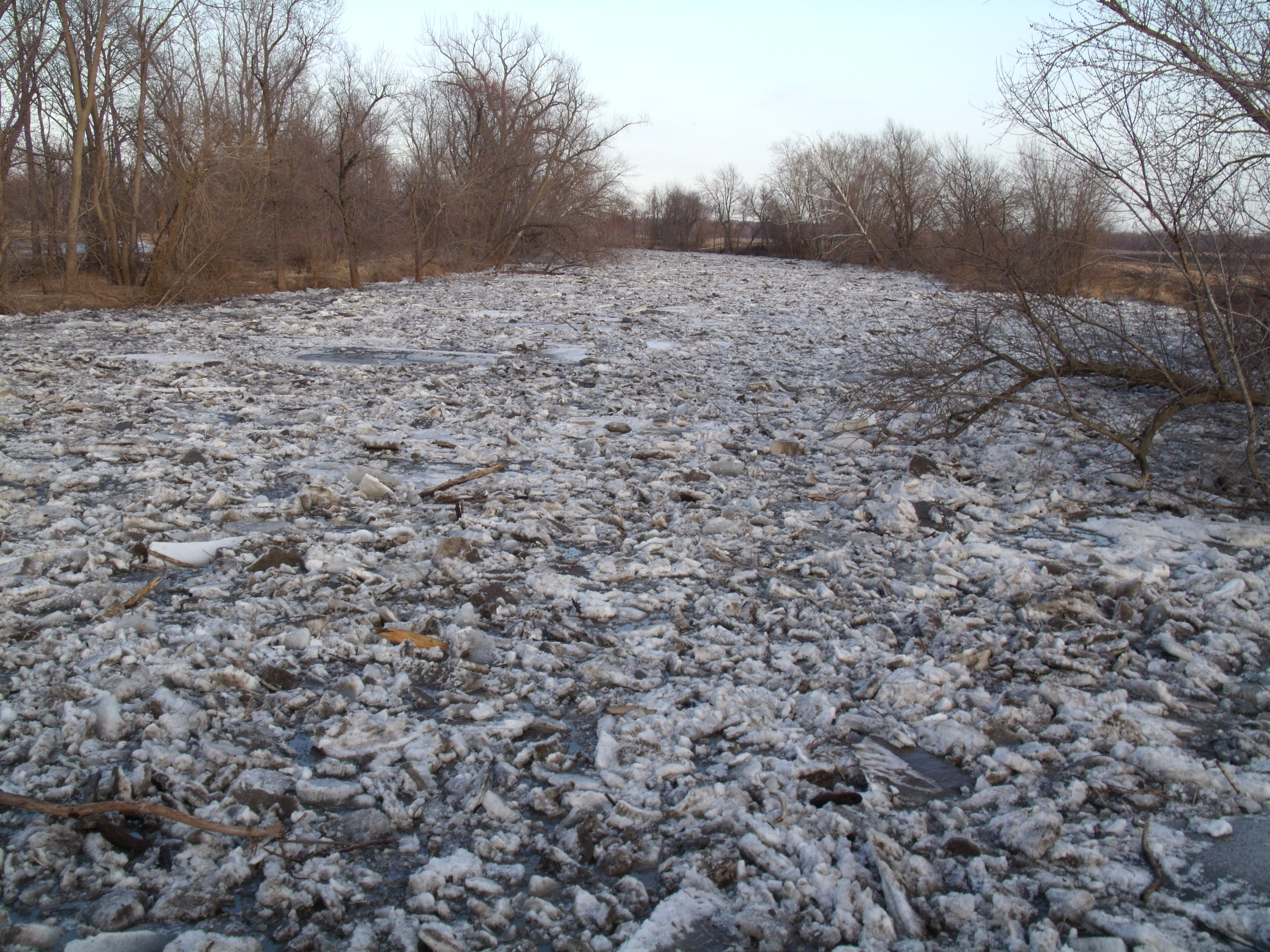 When there is a rapid warm up like we have currently experience in our region, the rivers open up quickly on the banks, leaving the more dense centers to float down stream. Those large chunks of ice become entrapped on bridges, trees, sandbars and many other obstructions. These instant dams can cause significant flooding with little to no notice.