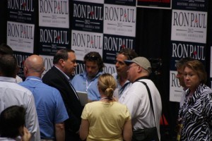 While there at the straw poll, the bright colored logo’s and t-shirts of various campaigns could be seen flowing around the campus of Iowa State. It was Tim Pawlenty’s green shirts being the most striking, as they flowed to and from his tent area.
