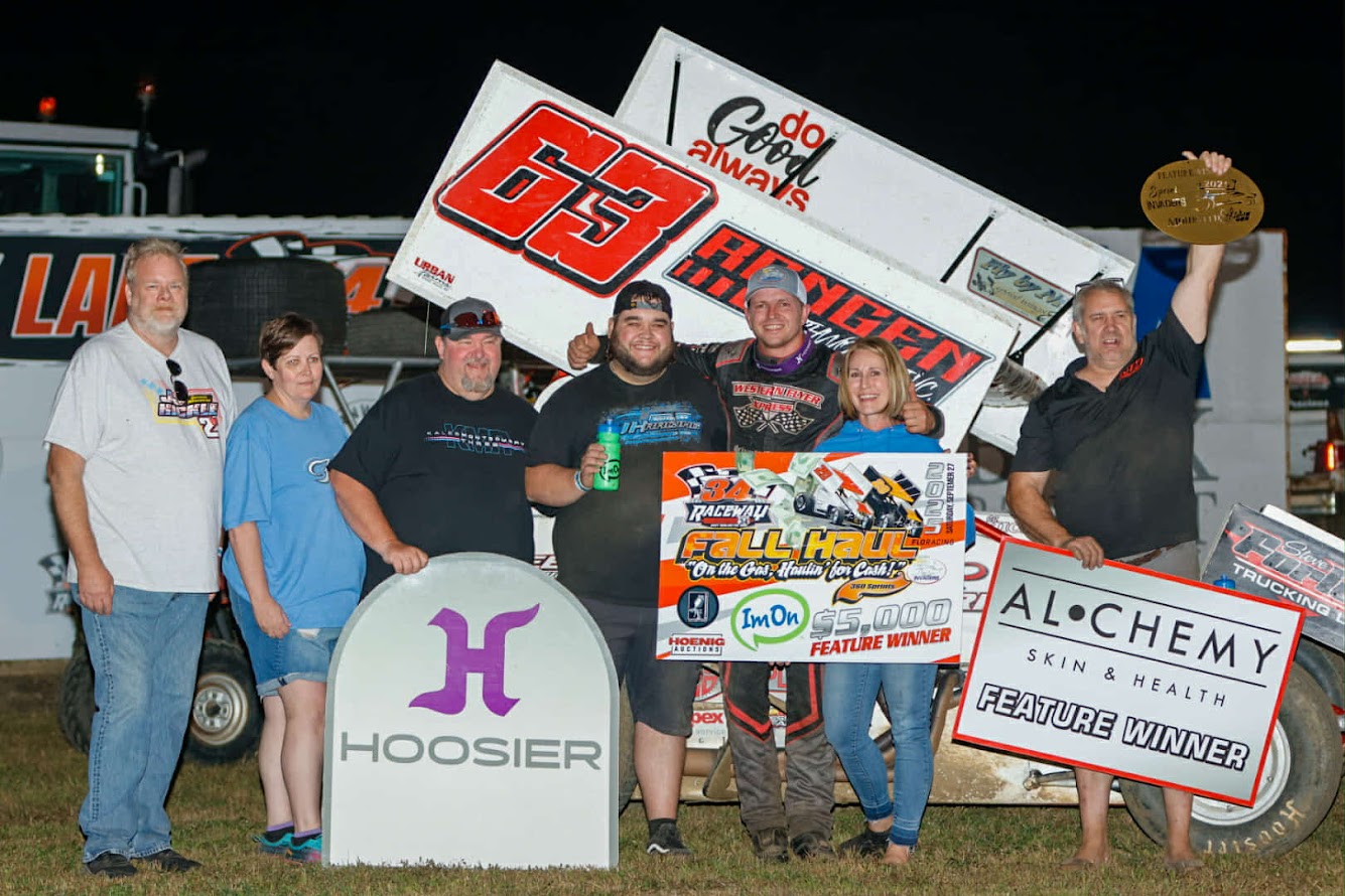 “That was a bit bittersweet,” said Nienhiser. “This (Fall Haul) has seemed to have my number for whatever reason. I led a lap tonight, and I think that’s about four out of five that I’ve led and had a chance to win. There’s always next year. I didn’t really do a good job during all those yellows. I was really worried about engine temperature. We were a little higher than I liked. That kept me from keeping the tire warm and it sealed over a bit. That last restart, Dustin kind of made a mistake. I thought it was going to go my way, but I just couldn’t get launched off the exit like I needed to, and my tires wouldn’t get going. JJ had a pretty good head of steam and I couldn’t keep him behind me. He earned that one. Being out of the car as long as I have, I owe it to these guys.”