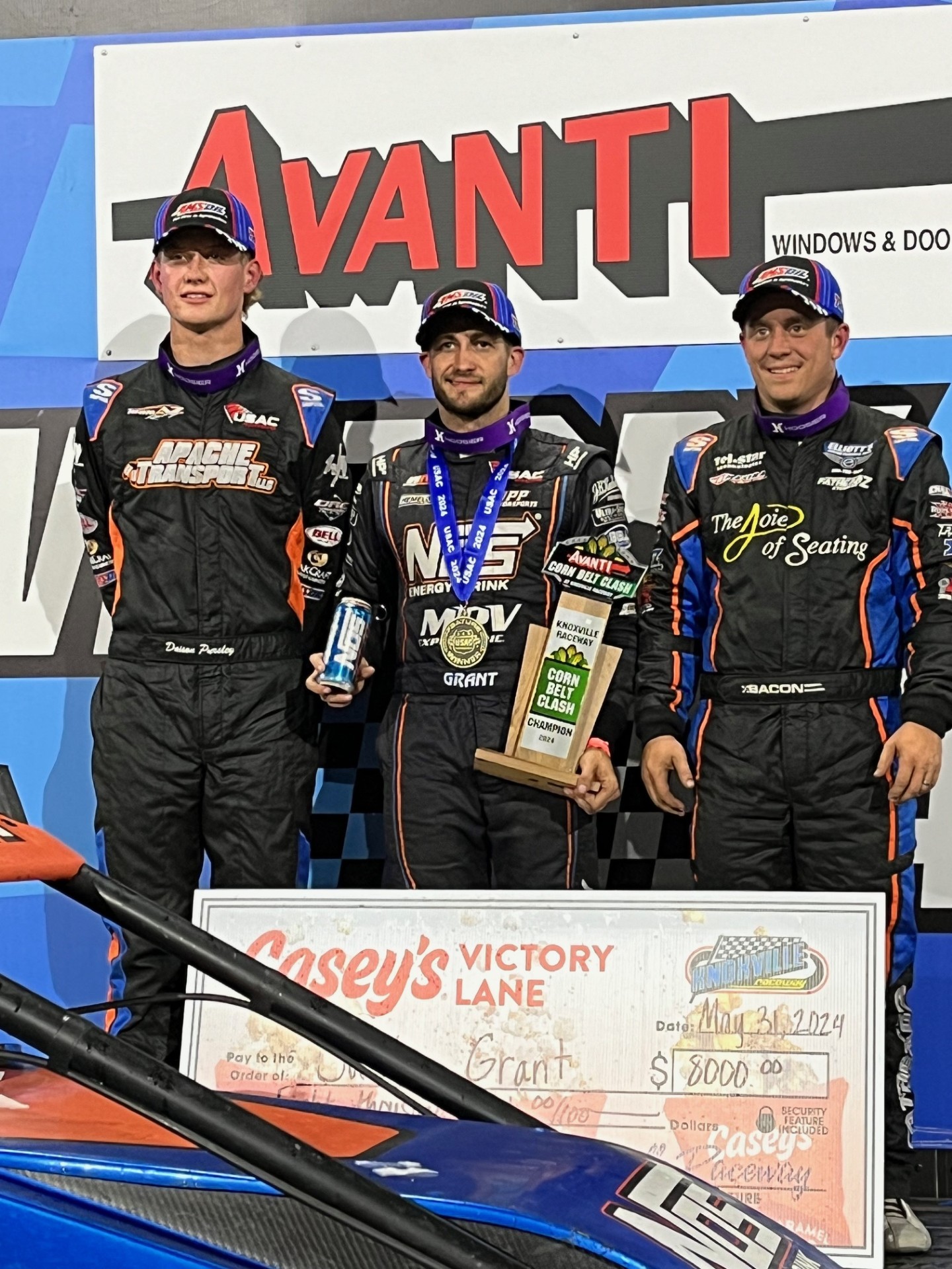 “It feels very good to get back in Victory Lane,” said Grant of his fifth USAC win of the year and the 50th in his career. “We have a rocket ship of a racecar. I was good early. I felt really comfortable. It got slicked and curbed up. It’s scary here at Knoxville. It’s fast and you’re up there on the curb. There were holes up in the cushion and I kind of got sitting back down in the seat trying not to crash the thing. Brady slid me, and I had a lap or two of the mopes. We got a yellow, and I was able to slide him there on the restart. If you come to Knoxville and you beat Brady Bacon, I feel like you’ve done something.”