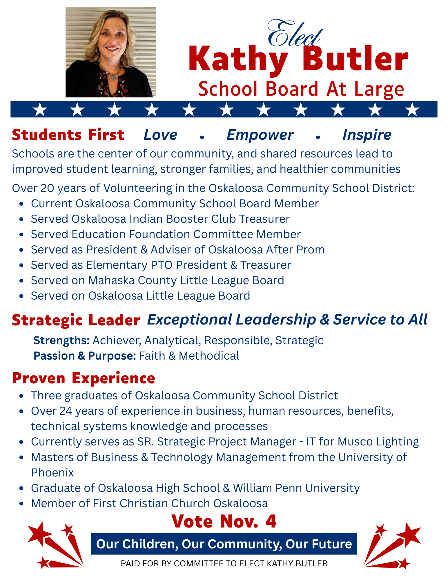 Kathy Butler – Oskaloosa School Board Candidate 2025
