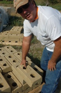 Currently, the team from Musco that has been using the press has made nearly 5000 bricks already, “We’re just making a few extra here,” says David Stanley of Musco, who has been overseeing the brick making process for the stadium.