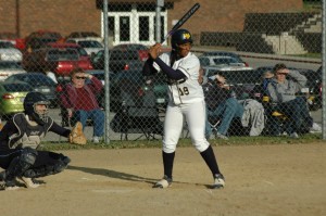 William Penn heavy hitter Khyia Lewis prepares to put one way over the left field fence Tuesday night against St. Ambrose
