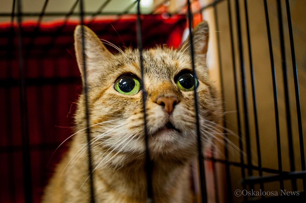 Oskaloosa, Iowa – Cecilia sits in her kennel at the Stephen Memorial Animal Shelter in Oskaloosa. She continues to settle down, is playful with the staff, and will shortly be looking for a new home.