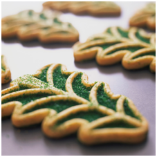 Remove cookies and cool and frost with a powdered sugar icing.  Take some powdered sugar and add almond or vanilla flavoring and some milk to get it to a consistency that you can either drizzle or lightly frost the cookies.  Then sprinkle with holiday cookie sprinkles.