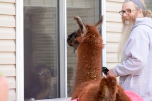 The windows blocked their voices, but inside Van Zomeren was able to hear the residents’ reaction as the llama’s paraded by. Residents were saying over and over how nice it was that Mann and the others would take the time to visit. “We love this,” is something else Van Zomeren heard the residents saying. “They were just touched. Very touched.”