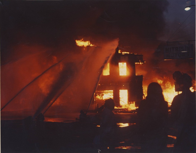 A disastrous fire in 1977 wiped out Hawkeye Lumber, which was located at 500 High Ave. West. New construction on Highway 23 South replaced the burned facility.