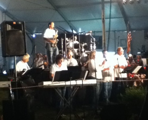 The performance kicked off around 11:30 am on the stage in her air conditioned tent. Jeff and Holly Ridenour of Oskaloosa said “Playing in Michele Bachmann’s tent was a great honor. Made all the more fun by the fact that she won!”