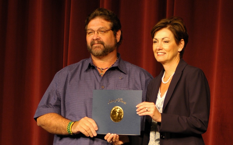 Jim Walker is seen here receiving his award from Lt. Governor Kim Reynolds