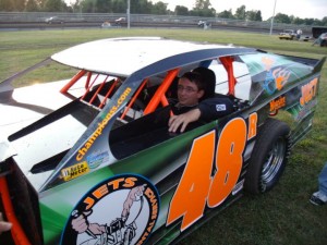 Nate Redlinger sits in his car ready for another night's racing at the Southern Iowa Speedway