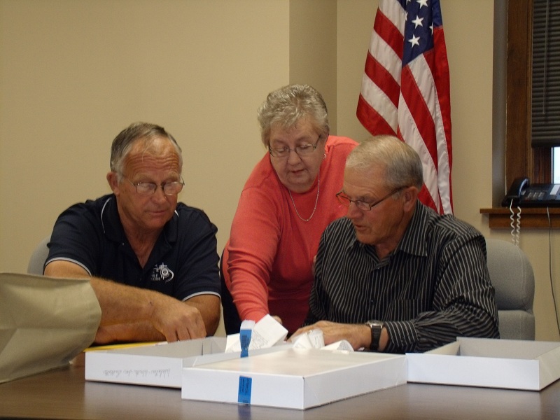Mahaska County Supervisor Willie VanWeelden (left), Mahaska County Auditor Kay Swanson (center) and Mahaska County Supervisor Ken Rozenboom look over results from Tuesdays school board elections.