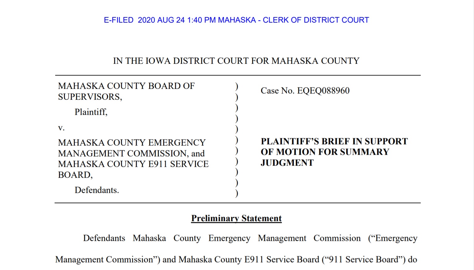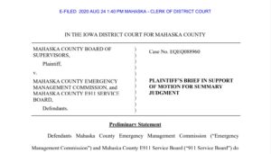 The Mahaska County Board of Supervisors has then asked for summary judgement on their case, filing on August 24, 2020.