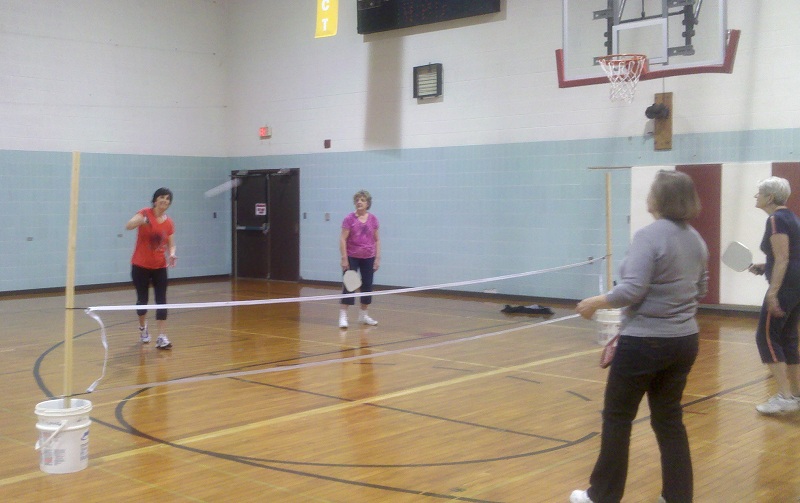Oskaloosa, February 15, 2012 – Members of the Mahaska County YMCA can now add Pickleball to their list of favorite sports at the Y. With pick-up games increasing in demand in recent weeks at the Y gym, fans of the sport have set the facility abuzz. By utilizing the badminton lines already in place at the YMCA, Pickleball players combine the rules of tennis and ping pong, with the perforated plastic ball, wood or composite paddles, and three foot high net of Pickleball, to get an extraordinary sport that everyone can enjoy.