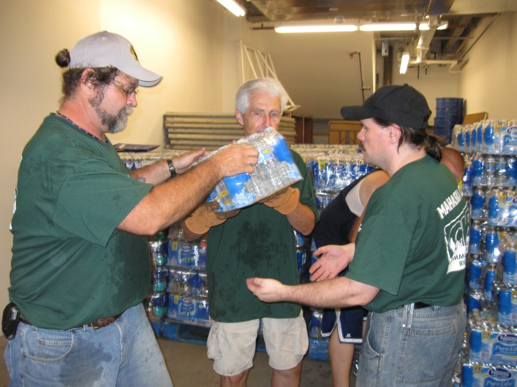 The Mahaska County CERT Team helps to unload bottled water on August 17, 2010