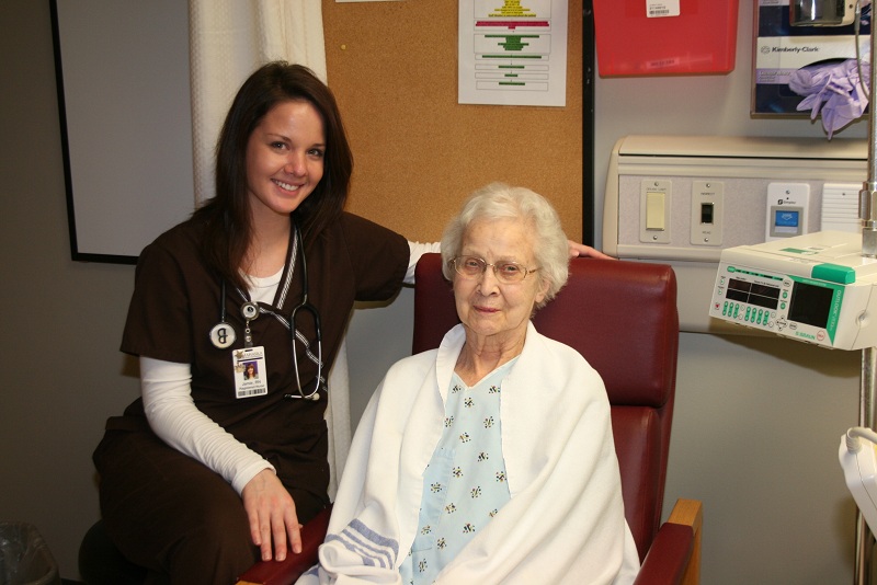 Mahaska Health Partnership staff renewed their commitment to making healthcare personal for patients as they celebrated National Patient Recognition Day on Feb. 3 Inpatient Services Nurse Jamie Life, RN, takes some extra time after ending her shift at 7:30 a.m. to thank Marjorie VanGorp of Leighton choosing MHP for her healthcare needs.