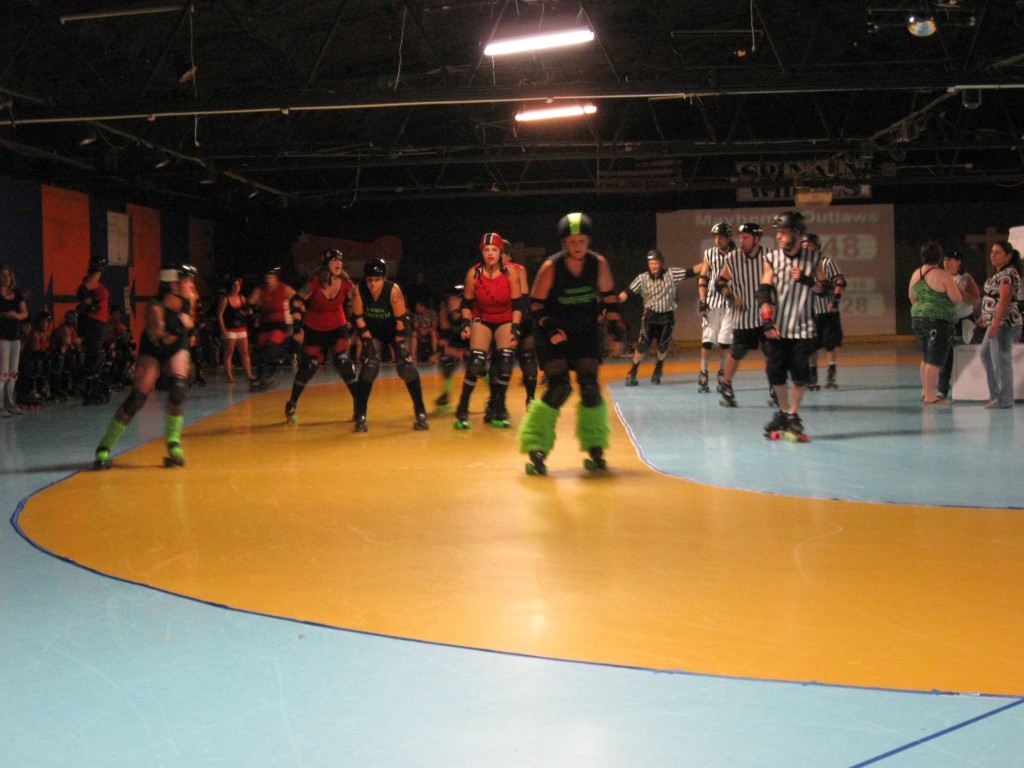 With this being such a physical and mental sport the question arose whether or not any of the bouts had gotten out of control and broken out into and argument. They informed me that  “No, not yet”. Anita Spankins also included that “We are so new that it is like the first day of school each time”. It was also said that ” We take out our aggressions on the track then we are friends off the track”.