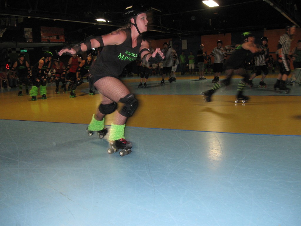 I asked the girls which of the teams they skated against was the toughest. The first answer was MIR (Mid Iowa Rollers) out of Des Moines, which went undefeated this season. Another team mentioned was Clinton. Overall, each team is tough in their own way whether it be physically or mentally, each seem to have their own tactics. It was also mentioned that, with the sport growing in such popularity, a lot of teams are recruiting college athletes or girls that have been very athletic and are in good shape physically.