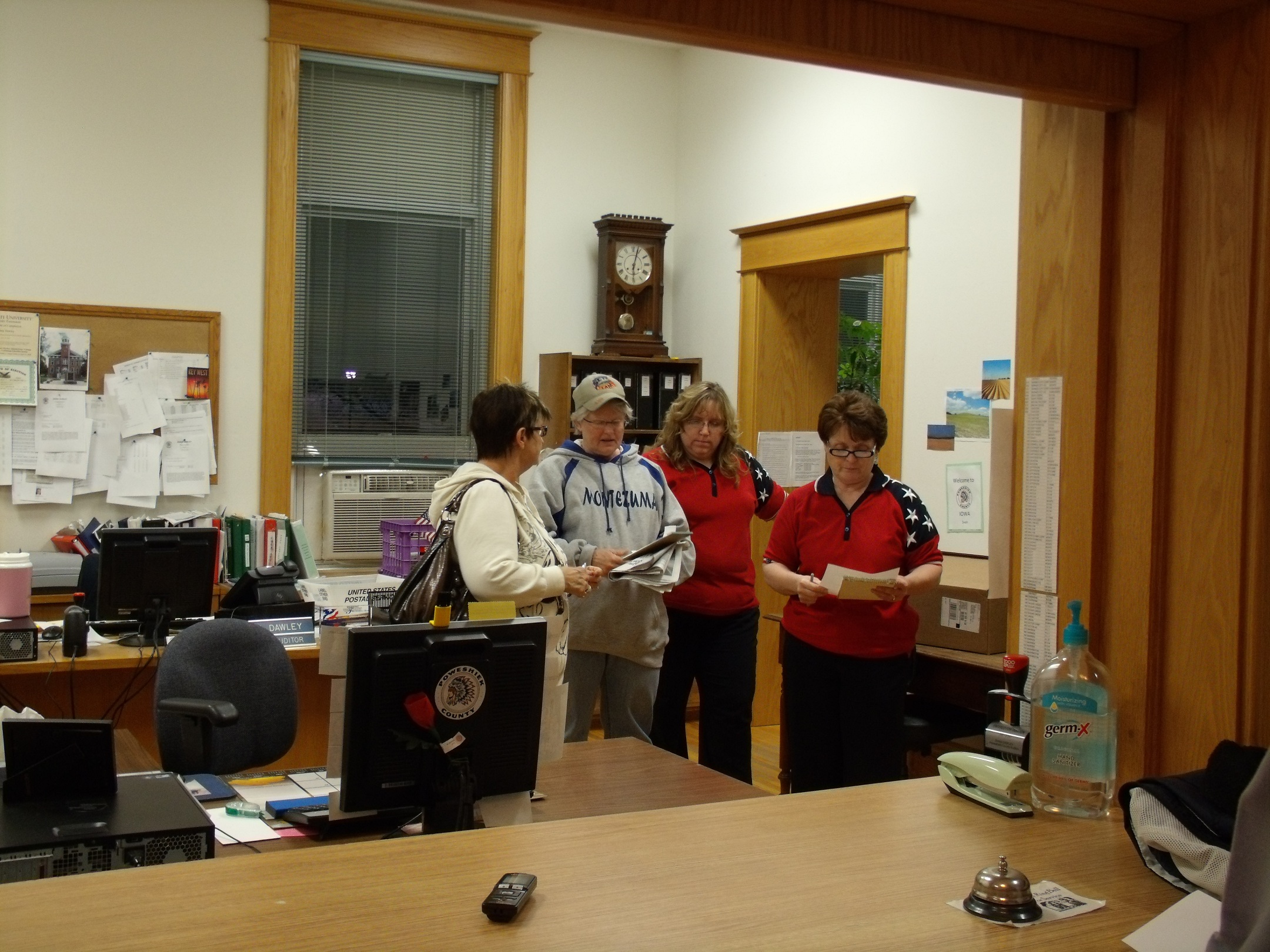 Poweshiek County Auditor Diana Dawley (right) reads the results of the school bond results on Tuesday April 5th, 2011