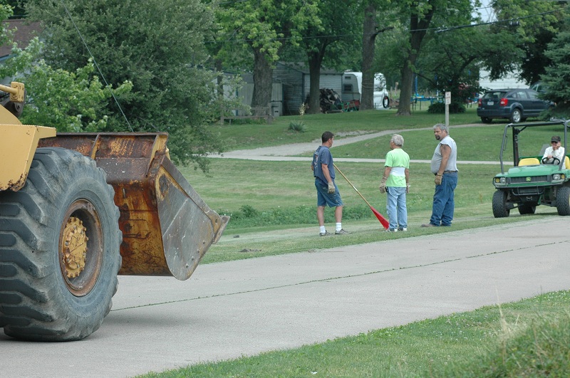 Beacon, Iowa – The rumble of diesel motors filled the streets of this small town of less than 500 on Monday morning shortly after 7:30 am. There, trucks from the county could be seen working with an end loader and labor from a couple of dedicated city council members and its mayor Shawn Maxwell.
