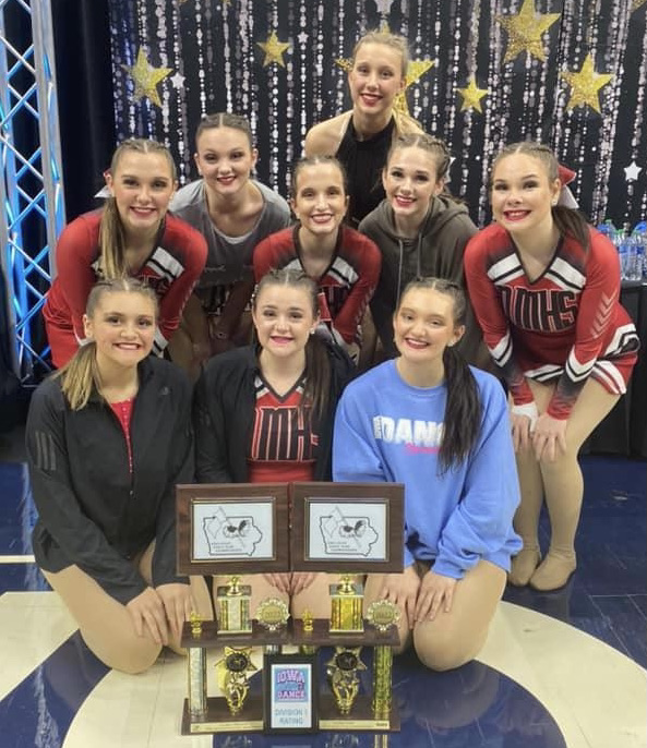 North Mahaska participated at the Iowa State Dance Championships on Dec. 2. The team placed second in novelty, fourth in jazz and received a Division I rating in pom routine. Team members are front row (l-r): Lexi VanUtrecht, Morgan Hudson, and Gracee Chandler. Middle row: Lily Hartwig, Ava Pickard, Ally Livezey, Natalie LaRue, and Dani Miller. Back: Breckyn Schilling.