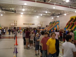 The day used to be somewhat smaller, but has become a super-sized event since the elementary schools were combined seven years ago. The inflatables cost almost $5,000.00 for the day, with those funds being raised throughout the year by different events. Every grade level gets about 1 hour and 45 minutes of time with all the inflatables. The funds for this event are raised during a corporate fund drive and the annual Read-A-Thon.