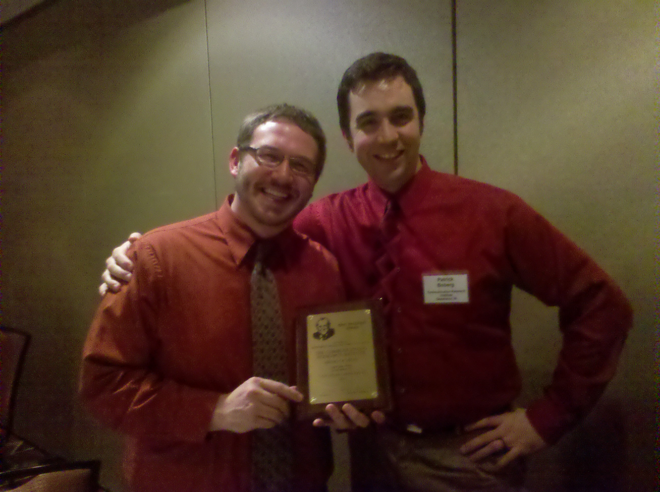 AJ Hodgeman (left) and Patryck Boberg pose shortly after being awarded for their work on "One Day Getaway" (submitted photo)