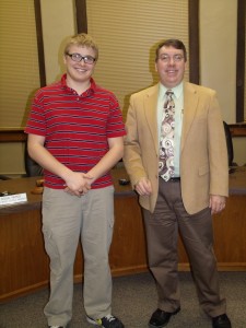 The Oskaloosa Planning and Zoning Commission added a new member to it's board at the March 21st city council meeting. Charlie Comfort, a local High School Senior and also Political Editor for Osky News (left), poses with Mayor Dave Krutzfeldt (right). Comfort was appointed by the Mayor and Oskaloosa City Council to an unexpired term that ends April of 2015. (photo K.Allsup)