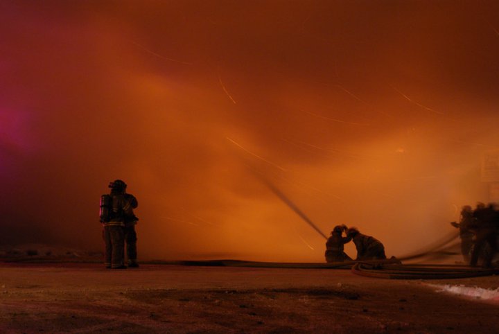 Firefighters battling not only the fire but the elements to bring the flames under control (photo D.Hubbard)