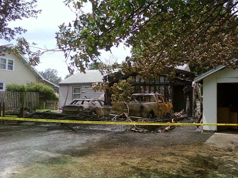 A neighboring garage, as well as a home, suffered some damage such as melted vinyl siding because of the close proximity to the fire. Work by fire crews helped to prevent further damage.
