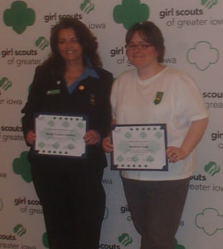 Receiving the Excellence in Volunteering Award were Sandi Tucker-Stanbro and Dori Massey. Tucker-Stanbro has served as a troop leader and for the past six years as Service Unit Manager for the organization. She also works with Council as a trainer and has provided guidance on Juliette policies. Massey has served as both a leader and a co-leader in Oskaloosa and provides leadership with many community events, including chairing committees and being involved whenever possible.