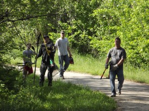 The mile of adopted trail location is from Bobzilla’s Bike shop to South M Street. The group, including Jake McGee, Troy Boston, Ben Johnston, Craig Alexander, Brent DeRonde, and Gary and son Will Kutcher, began Monday night cleaning, trimming and clearing this area of trail. The job took two hours for the initial trimming and cleaning and the Association will maintain it at least once a month throughout the season.