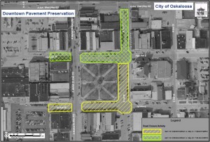 The City of Oskaloosa is proactively utilizing “pavement preservation strategies” to preserve its pavement infrastructure. The City will start pavement preservation activity in the downtown area. The activity is scheduled for April 16th, May 21st, and May 22nd of this year. GEE Asphalt Systems, Inc. is the contractor for this pavement preservation project. This pavement preservation activity will restrict access to 1st Street from A Avenue to 1st Avenue, 1st Avenue from 1st Street to 150 feet west of Market Street, and High Avenue from 1st Street to 150 feet west of Market Street. Weather permitting, road closures will be on the dates shown below.