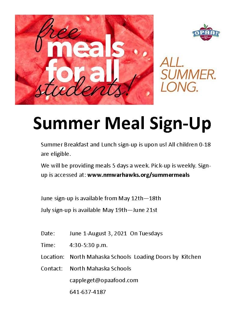 The Oskaloosa School District and Mahaska County United Way have partnered to help provide those meals to individuals under 18 over the summer months.